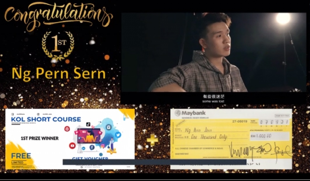 (芙蓉10日讯)森美兰中华总商会“关怀马来西亚”短片竞赛今日举行线上颁奖典礼,年仅19岁的黄鹏晟以自创曲“疫起度过”短片获得冠军。