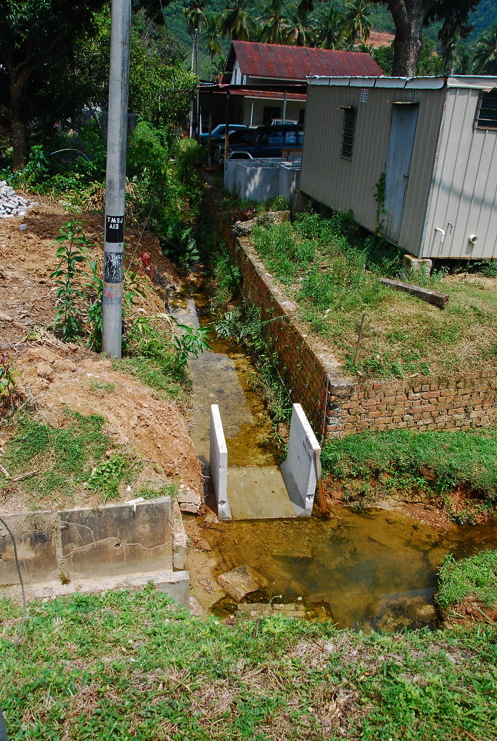 他说,出现泥层下陷的路段,是该新村的主要排水道,无论是从泰梳山排下的流水,或是从新村里排出的沟渠水,都是经过该处汇合,通过地下涵管排出道路另一端,再排进河里。