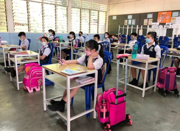 今天的复课过程一切顺利,孩子们都能适应,同时表现雀跃,纷纷表示比较喜欢实体课。校方时刻确保学生们遵守SOP,除了进食或喝水外,不可脱下口罩,并保持身距。