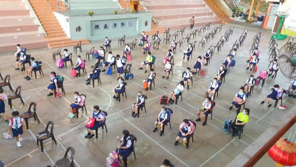 虽然疫情已缓和,但校方防疫不松懈,时刻确保师生们遵守SOP,下课时段依然得留在教室用餐。目前,本校的教职员、校工、保安人员和食堂业者皆已完成接种疫苗。