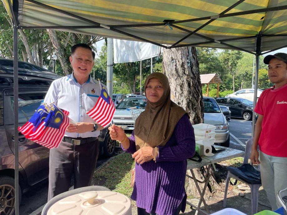 今年的国庆日来临之际遇上森州州选,叶耀荣有感森州的国庆日氛围比往年较逊色,因此,他透过州议员服务中心联同非政府组织亚沙青年技能公会在巴刹派发1000个国旗给贩商及居民,借此鼓励他们挂国旗及挥动辉煌条纹。
