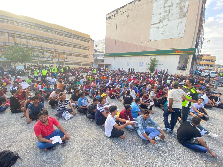 适逢周末,不少各籍外劳趁着假日出门采购,因此许多在商场、大街行走外籍人士也无一幸免,被当场扣押,送到集中区等待核查资料。