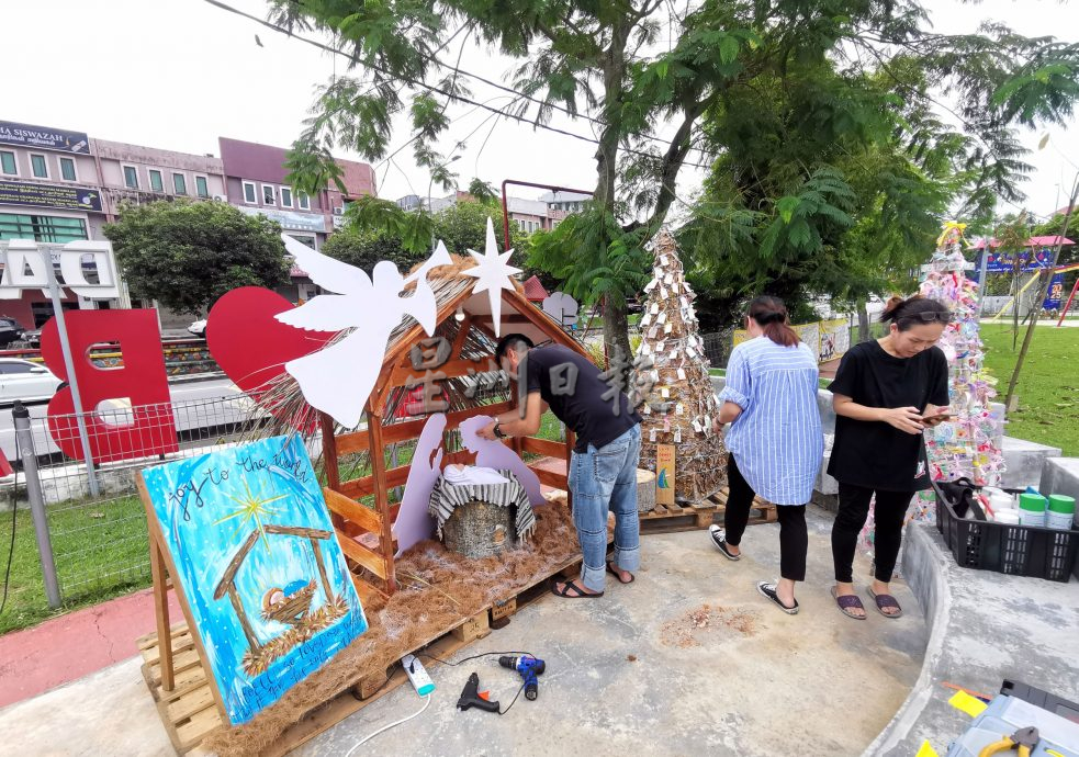 不仅如此,现场也有工作人员正忙碌地装饰广场,包括使用环保材料打造耶稣诞生场景、雪人、各式彩灯及圣诞树等,准备迎接来临的圣诞节。