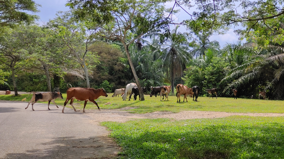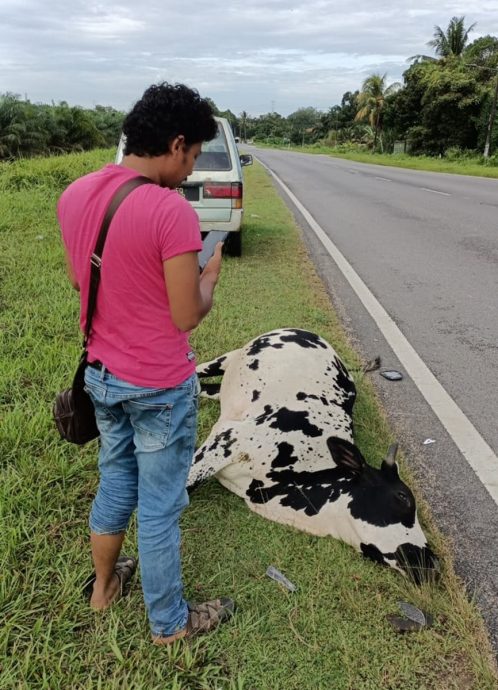 他指出,由于道路两旁多为茂密树林和油棕园,经常有牛只因踩空从斜坡跌落至道路,令驾驶者措手不及,这样的情况不仅导致车辆损坏,更可能危及生命。