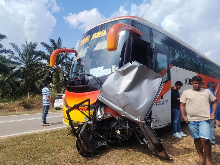 仁保警区主任诺希山警监证实,这宗意外是今午大约3时发生马口通往弄边路第9公里,涉及一辆长途巴士及一辆第二国产车(kenari )轿车。