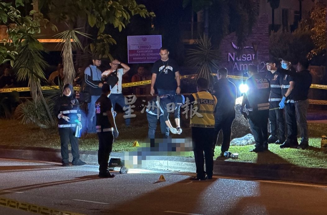 一名33岁印裔男子昨晚与家人在嘛嘛档用餐后取车时,惨遭6名蒙面男子开枪击杀及追砍,男子中弹后试图逃离现场,惟最后伤势过重,惨死在路旁。