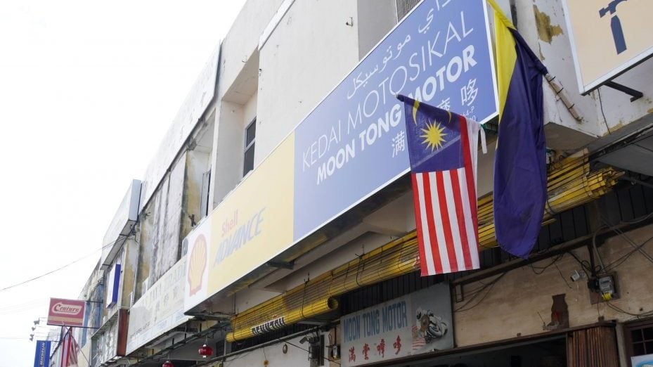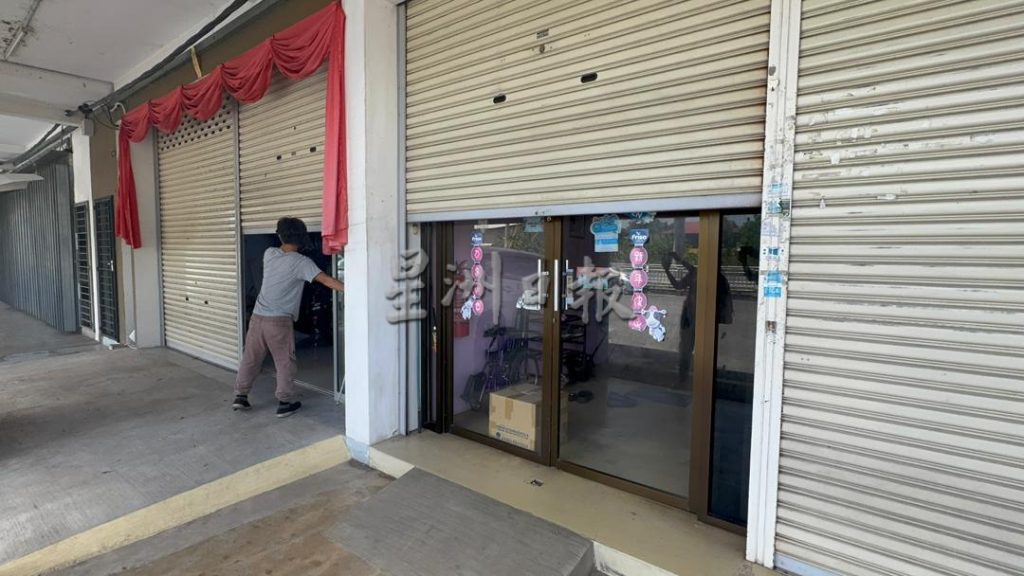 临近下午1时,与被指挥舞倒挂国旗的甲抛峇底五金店同排的商店,业者都已拉下闸门停业。