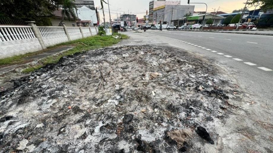 农历七月已过,惟大街上至今仍出现祭拜活动的残余物,令人气愤。