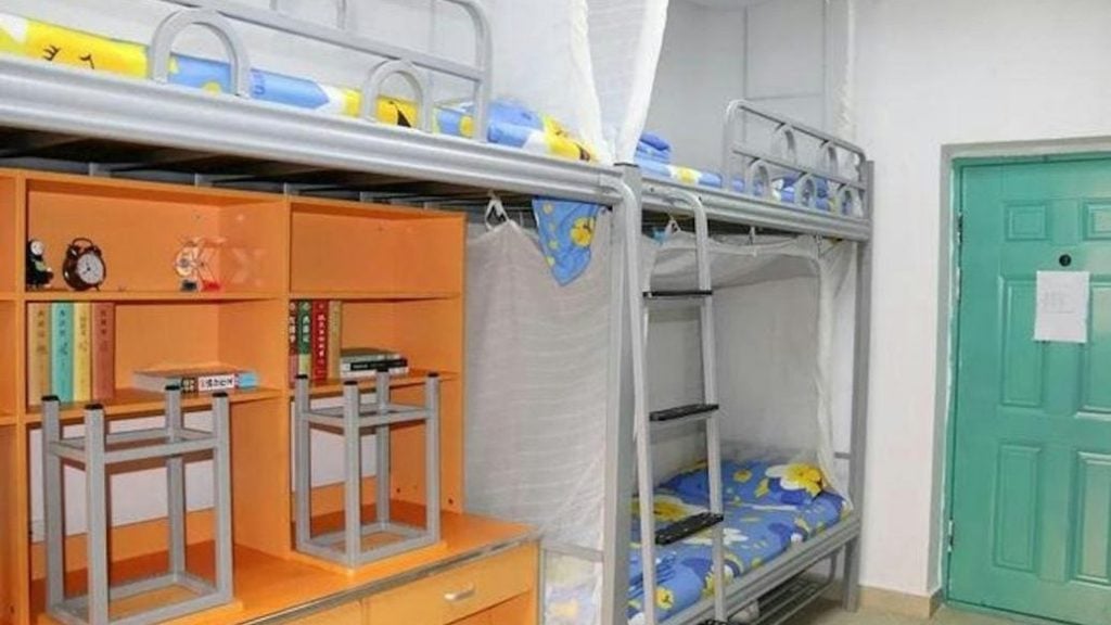8人房硬挤9人!中国一所公立学校被指宿舍超员,原本设计8人一间的男生宿舍,却被安排住了9位学生,结果有2名学生被逼挤在仅1.1公尺宽的床位上。