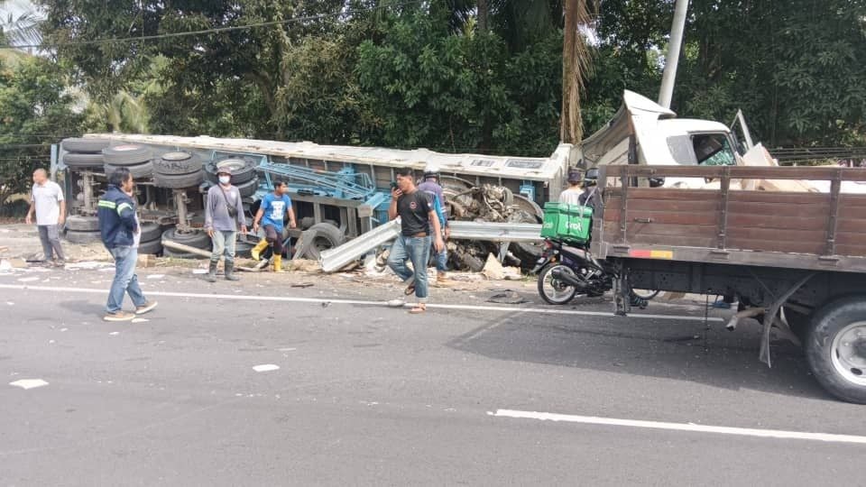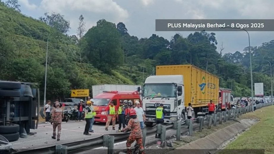 (江沙8日讯)一辆拖格罗里今日中午在南北大道第256公里处朝北路段(介于美诺拉隧道至江沙路段)翻覆,导致北上车道受阻,交通陷入瘫痪。