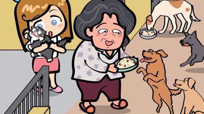 一名妇女长期喂养流浪狗,没想到这份善心,竟在关键时刻救了她一命。