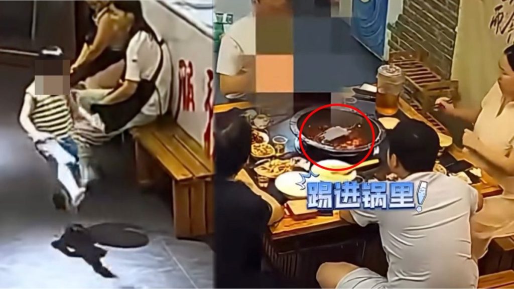 顽童一脚飞出拖鞋 落入火锅吓坏食客