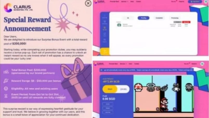 (新加坡24日讯)新加坡警方自上个月以来,已接到至少215宗,有关包括经营网络商店在内的一系列网络诈骗投报,受害人损失的金额至少1060万元(新币,下同;约3360万8466令吉)。 《8视界新闻网》报道,新加坡警方发表文告说,受害人一般是在社媒平台、求职网站、即时通讯应用程序WhatsApp或Telegram,看到骗徒刊登的广告或发送的讯息。 骗徒一般以3种任务形式进行诈骗,包括:完成网络任务、经营网络商店、完成网络问卷调查,以赚取佣金。 骗徒还会诱使受害人在虚假的网络商店注册账户,或要求他们预先存入资金,以完成所谓的任务。 受害人往往是在发现必需存入越来越多资金,或无法提取佣金时才惊觉受骗。