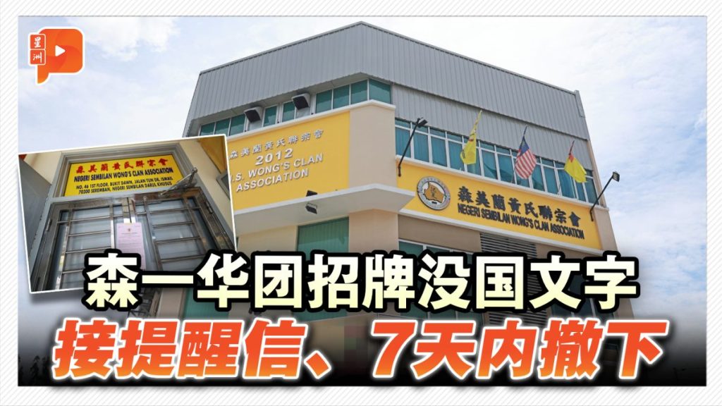 森美兰黄氏联宗会因招牌未附国文字,被芙蓉市政厅发出提醒信,要求7天内拆下更换。该会自2012年建会所以来,从未接过任何警告,如今突遭处理,引发关注。该会的中文招牌旁附有英文“Negeri Sembilan Wong’s Clan Association”及“江夏堂”,却仍被指不符条例。