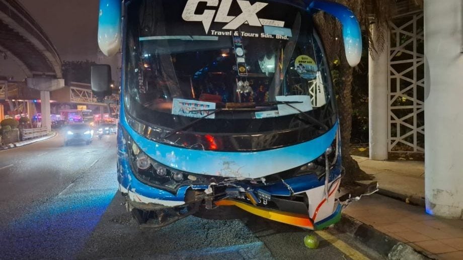 吉隆坡市中心武吉免登区昨晚发生一宗涉及4辆轿车及两辆旅游巴士的连环撞车祸,导致3名成人及两名孩童受伤;隆市消防及拯救队伍受召赶往现场,救出伤者。