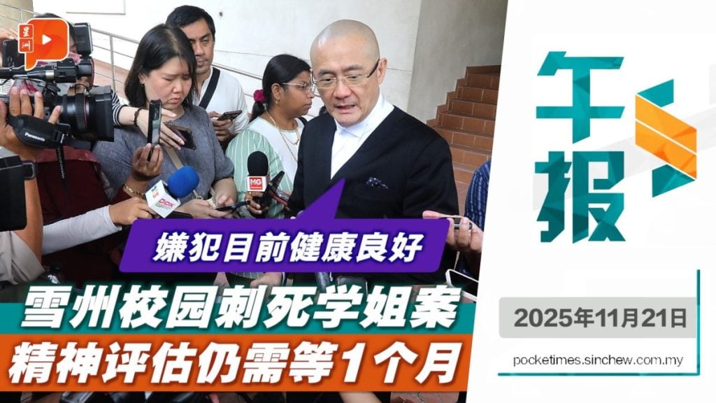 轰动全国的白沙罗万达镇国中四校凶杀案有新进展,14岁少年嫌犯的精神评估报告尚未完成,法庭批准延长一个月,案件将于12月19日再开庭。被告律师强调,这份报告对案件至关重要…… 新闻重点 👉校园凶杀案 律师: 嫌犯身体状况良好 👉“国大党国阵非仇人” 威尼斯瓦兰: 随时准备与国阵领导层会面 👉哈山卡林:拉菲兹拯救了蓝眼 👉NG999新系统搁置?法米直斥:假消息! 👉归化球员风波未了 政府暂停足总额外拨款 👉电缆盗窃猖獗 铁路系统今年延误逾1300小时 👉73岁司机遭油槽盖击中 当场丧命 👉逃跑不及12小时 越狱囚犯落网 👉失控坠入树林酿火患 司机来不及逃生亡