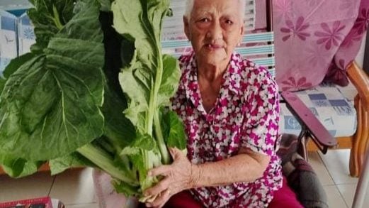 90岁老奶奶多年来仍亲力亲为种菜,最近成功种出一棵重达2公近800克的芥菜,用来腌制咸菜。