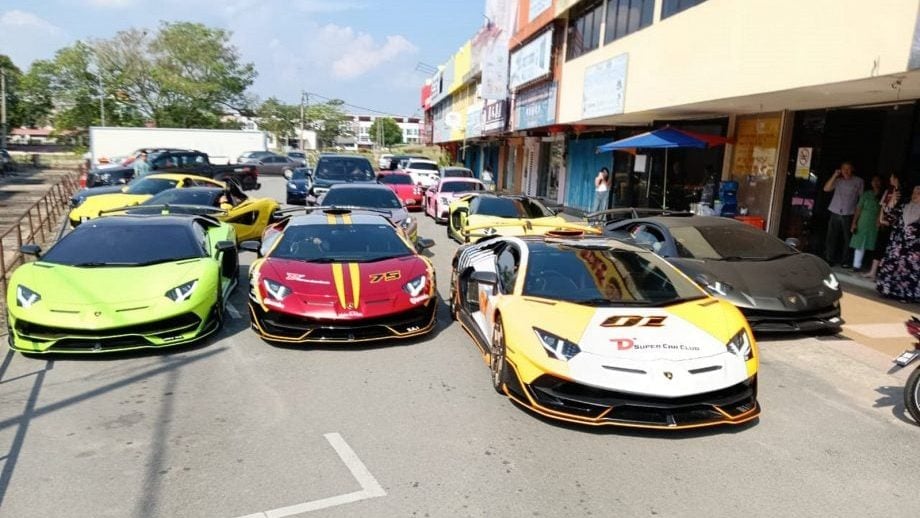 来自吉隆坡、马六甲及芙蓉的17辆超级跑车的车主及团队,日前出现在马口,并在马口大街一带“炸街”,晚上则停在万乐镇广场上,吸引很多人趋前观赏这些小地方罕见的跑车。