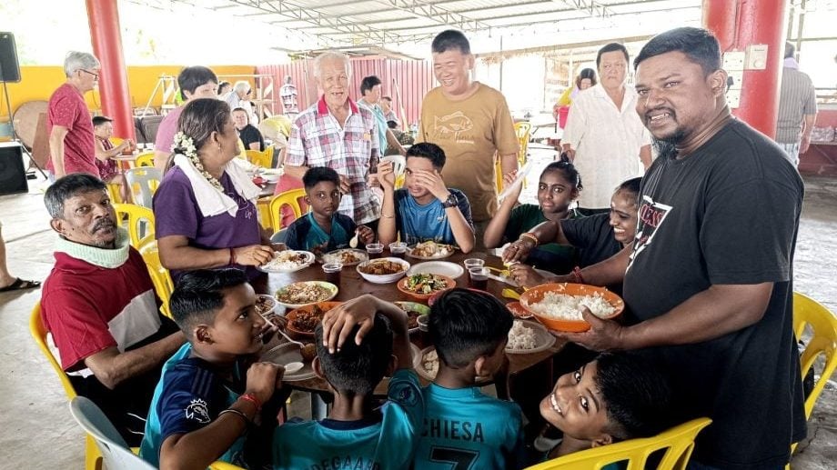 马身新村拿督公庙在屠妖节当天主办宝诞庆典,庙前热闹非凡、香烟袅袅,并设下平安流水席招待各界善信。